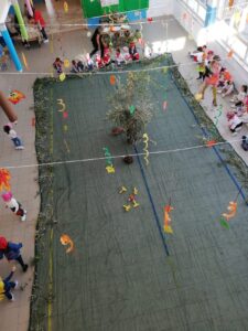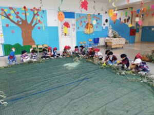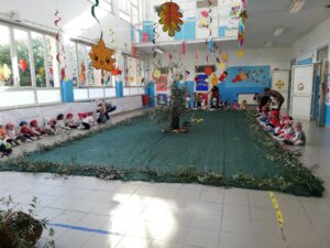 Nei plessi di Via Trieste e La Carrubba, invece, la fantasia e la creatività delle insegnanti hanno trasformato il salone in un vero e proprio oliveto al coperto: rami, foglie, reti e scenografie curate nei dettagli hanno reso l’ambiente magico, coinvolgendo i bambini in un’attività sensoriale e partecipata.